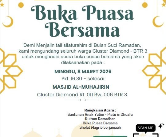 Dalam rangka menyambut Hari Raya Idulfitri 1447 Hijriah, pengurus Masjid Al Muhajirin Cluster Diamond BTR3 Bekasi mengundang seluruh warga untuk melaksanakan Sholat Idul Fitri berjamaah.
