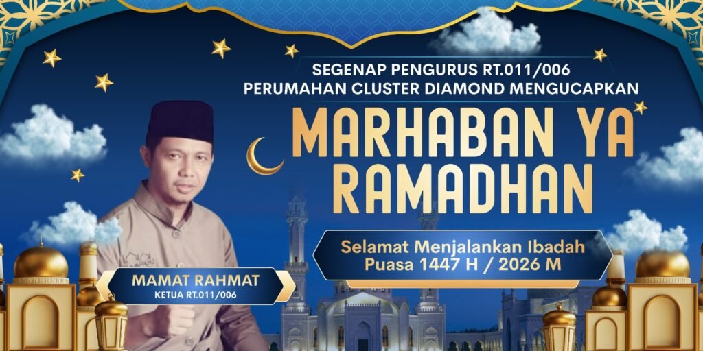 “Ramadhan adalah momentum memperbaiki diri dan mempererat silaturahmi antarwarga. Mari kita sambut bulan suci ini dengan penuh rasa syukur dan tanggung jawab, Saya mewakili pengurus Rt 11 Cluster diamond Btr3 Bekasi mengucapkan Marhaban ya Ramadhan 1447 H, Mohon maaf lahir dan batin” ujar beliau.