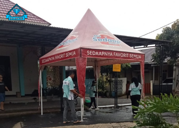 Tim mulai melakukan pemasangan tenda dan booth sebagai bagian dari persiapan Event Bukber bersama Mie Sedaap dan Top Coffee.
