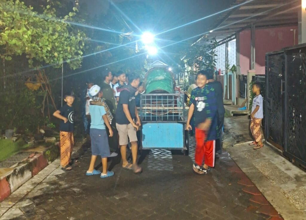 Suara tabuhan yang menggema di dini hari menjadi penanda datangnya waktu sahur sekaligus menciptakan suasana Ramadhan yang meriah dan penuh semangat kebersamaan.